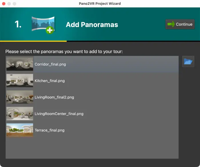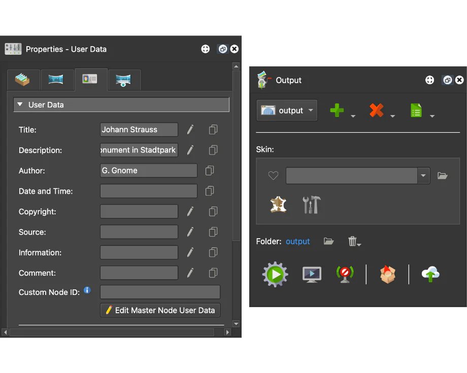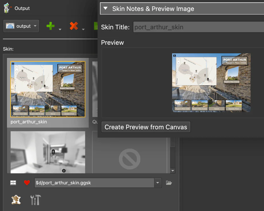 В Pano2VR появились более аккуратные иконки, новые значки и новый способ просмотра скинов в веб-выводе. Выбор скина осуществляется по превью. Все избранные попадают в сетку. По умолчанию встроенные скины отмечены как избранные. Можно добавить свои скины и превью.