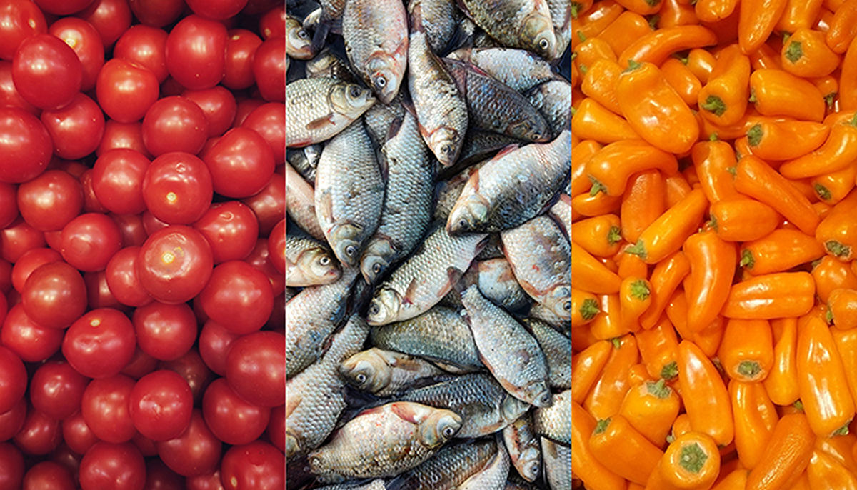 - продукция или овощи и фрукты на витринах или в ящиках;