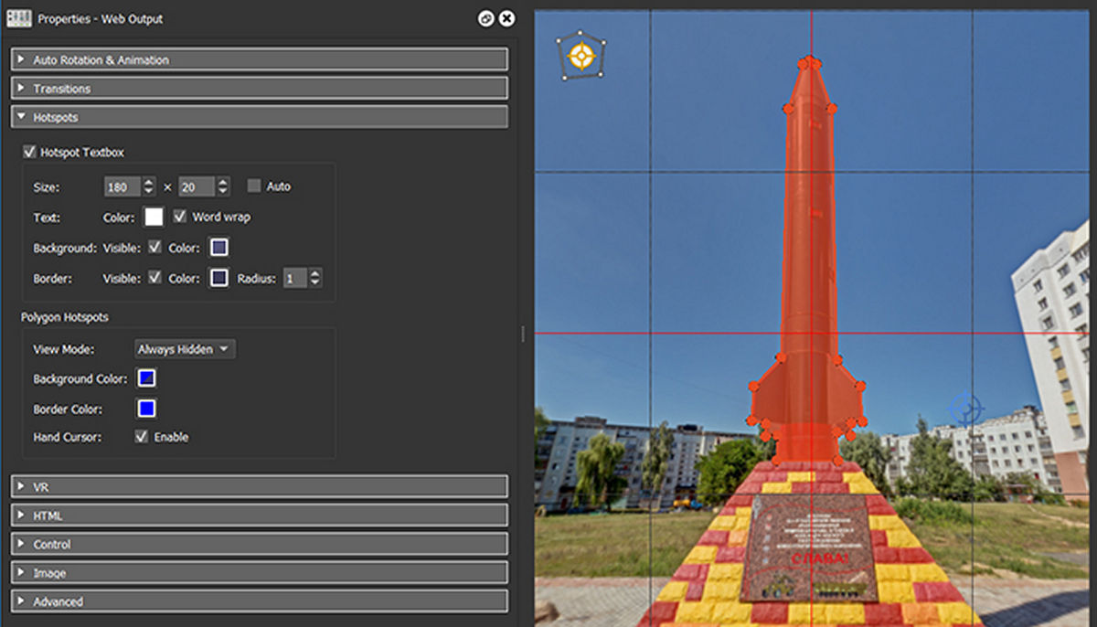 Активные зоны или хотспоты, – это неотъемлемая часть виртуальных туров. В Pano2VR существует два вида активных зон – точечные и полигональные. Из этой статьи вы узнаете, как создать Cактивные зоны в ваших виртуальных турах.