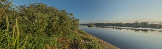 Первая панорама, снятая на объектив типа "Рыбий глаз" (Fisheye, фишай). Для съемки применялся объектив Samyang 8mm/3.5, фотокамера Nikon D7100 и панорамная головка Сфера-1М. Съемка в этом месте планировалась еще в июне, но тогда к этому месту подойти было невозможно - уровень реки не позволял. Сейчас река немного обмелела и мне удалось провести съемки с новым объективом, который появился в моей коллекции в начале августа. В этом месте через реку проходит магистральный газопровод высокого давления.