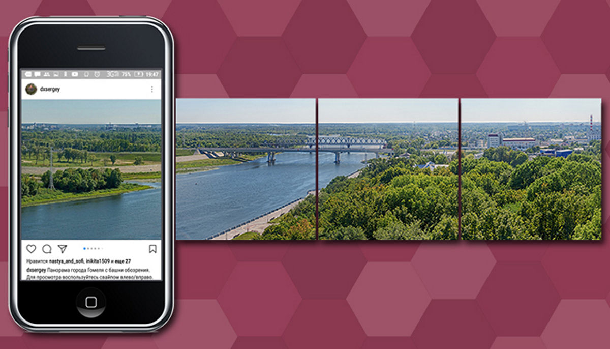 Можно, конечно, загрузить любое панорамное изображение. Однако оно будет либо слишком мало для просмотра, либо не вместится в определенные Инстаграмом рамки. Инстаграм поддерживает загрузку нескольких изображений (до 10 штук) в одном посте, которые просматриваются путем пролистывания влево или вправо. При просмотре в приложении создается впечатление широкой бесшовной панорамы. Этой функцией и воспользуемся.
