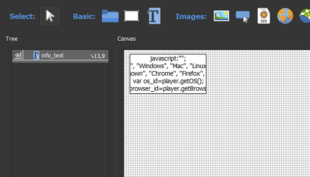 В свойстве «Text» введем следующий код. Он будет отображать версию текущей операционной системы и браузера. В коде используются 2 вызова Pano2VR Javascript API. Продолжение темы API выйдет совсем скоро.